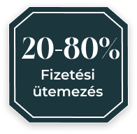 - Továbbá most elérhető a kedvező 20–80%-os fizetési konstrukció is, amely mindössze 20% önerőt igényel a szerződéskötéskor, a fennmaradó 80% pedig az átadáskor fizetendő.